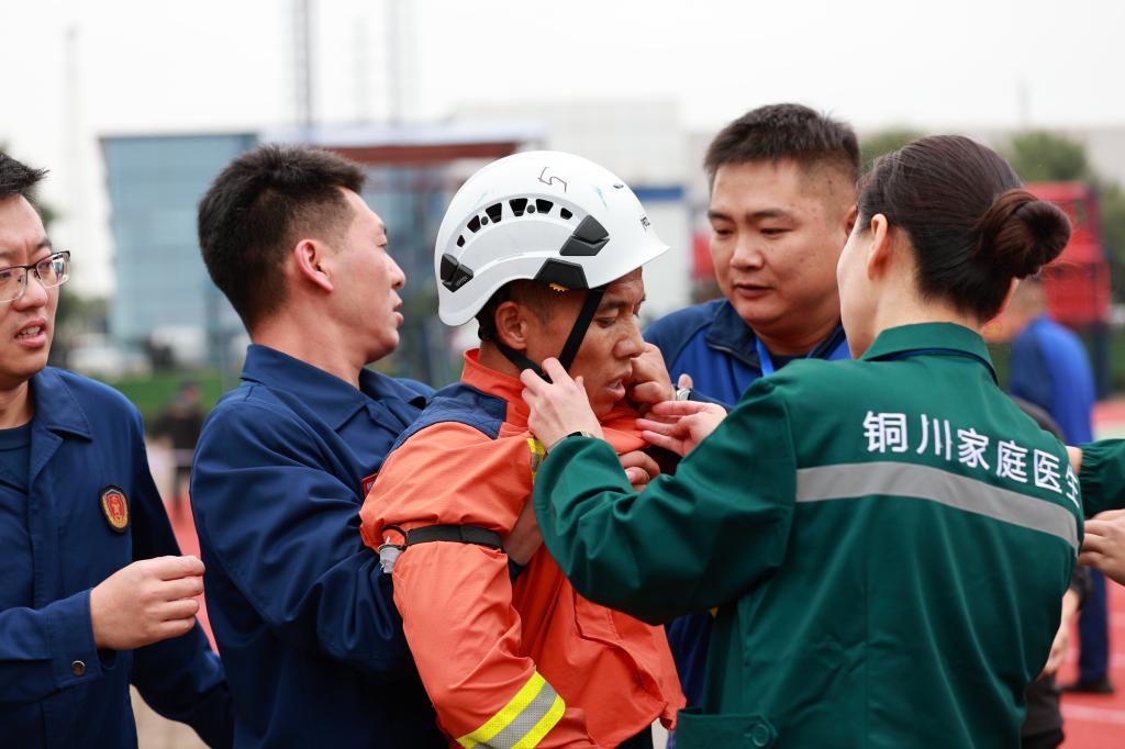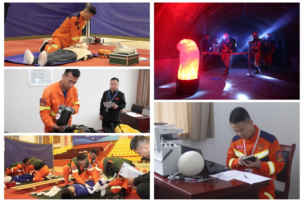 室外賽場競技如火如荼,室內(nèi)賽場的比拼也是精彩紛呈。爭分奪秒的醫(yī)療急救環(huán)節(jié),上演“與時間競速”的緊張場景;在煙霧彌漫的模擬“事故”區(qū)域,向戰(zhàn)而行的參賽隊員,則臨危不亂地進(jìn)行著現(xiàn)場狀況評估、傷員救治、災(zāi)區(qū)滅火、冒頂區(qū)支護(hù)、危險巷道偵查、封閉火區(qū)等一項項比拼;災(zāi)害氣體分析競賽現(xiàn)場,空氣如凝滯一般,仿佛只能聽見參賽隊員的心跳和儀表數(shù)據(jù)變化的聲響;呼吸器操作賽場,圍繞參賽隊員排查呼吸器隱患的準(zhǔn)確性與故障修復(fù)的時效性,展開測評與考核。