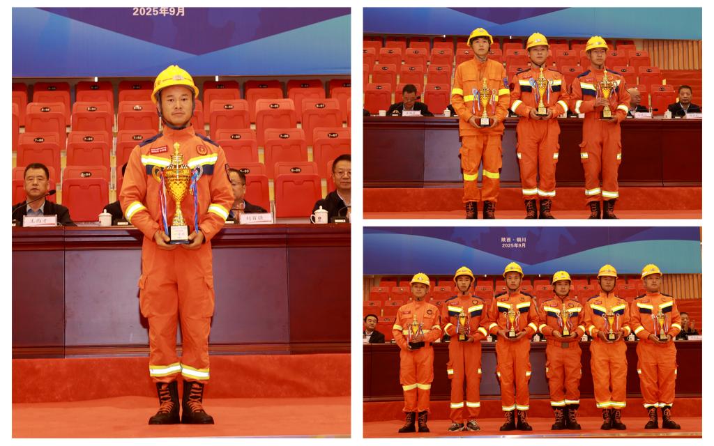 經(jīng)過為期4天的激烈角逐,各項目的競技成績陸續(xù)揭曉。最終,銅川礦業(yè)、澄合礦業(yè)、彬長礦業(yè)等10支代表隊,分獲團(tuán)體全能一、二、三等獎;銅川礦業(yè)、韓城礦業(yè)、澄合礦業(yè)代表隊的李見、楊晨、劉柯等分獲指揮員個人全能一、二、三等獎;銅川礦業(yè)、澄合礦業(yè)、神木市代表隊的李明路、習(xí)凡、李佳瑋等分獲技術(shù)員個人全能一、二、三等獎;銅川礦業(yè)代表隊黃強(qiáng)、步晨晨、澄合礦業(yè)代表隊賈黎明等分獲隊員個人全能一、二、三等獎;澄合礦業(yè)董家河煤礦、子長縣中達(dá)焦家溝煤業(yè)、韓城市棗莊實業(yè)參賽救護(hù)隊,分獲兼職礦山救護(hù)隊團(tuán)體全能前三名;澄合礦業(yè)董家河煤礦、韓城市棗莊實業(yè)、子長縣中達(dá)焦家溝煤業(yè)參賽救護(hù)隊的張亮、楊東紅、徐小春,分獲兼職礦山救護(hù)隊指揮員個人全能前三名;澄合礦業(yè)董家河煤礦參賽救護(hù)隊張勤生、劉澤澤、田怡劍,分獲隊員個人全能前三名;銅川礦業(yè)公司獲競賽優(yōu)秀組織獎;地方隊獲9個團(tuán)體全能獎、27個個人全能獎;大賽同時頒發(fā)了團(tuán)體單項獎、團(tuán)體優(yōu)秀獎、個人單項獎;并對2個最佳拼搏獎獲得者、35名優(yōu)秀裁判員、50名優(yōu)秀組織工作者進(jìn)行了表彰。