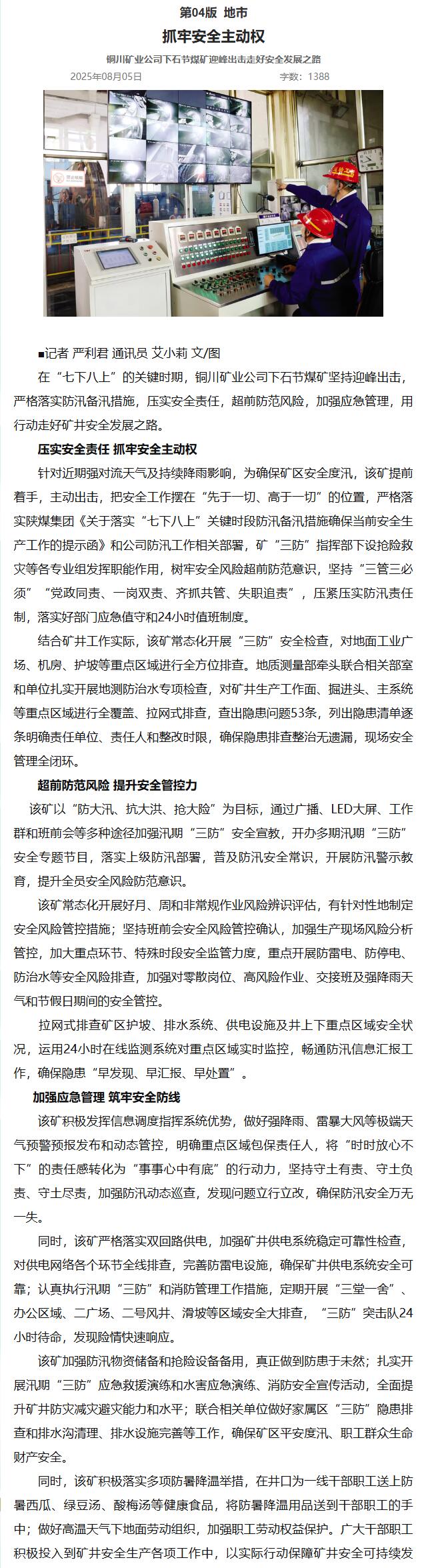 上一條:學(xué)習(xí)強(qiáng)國| 陳家山煤礦:讓“四種經(jīng)營理念”深扎根結(jié)碩果 下一條:集團(tuán)網(wǎng)| 銅川礦業(yè)陳家山礦:安全生產(chǎn)與優(yōu)質(zhì)煤質(zhì)的雙向奔赴