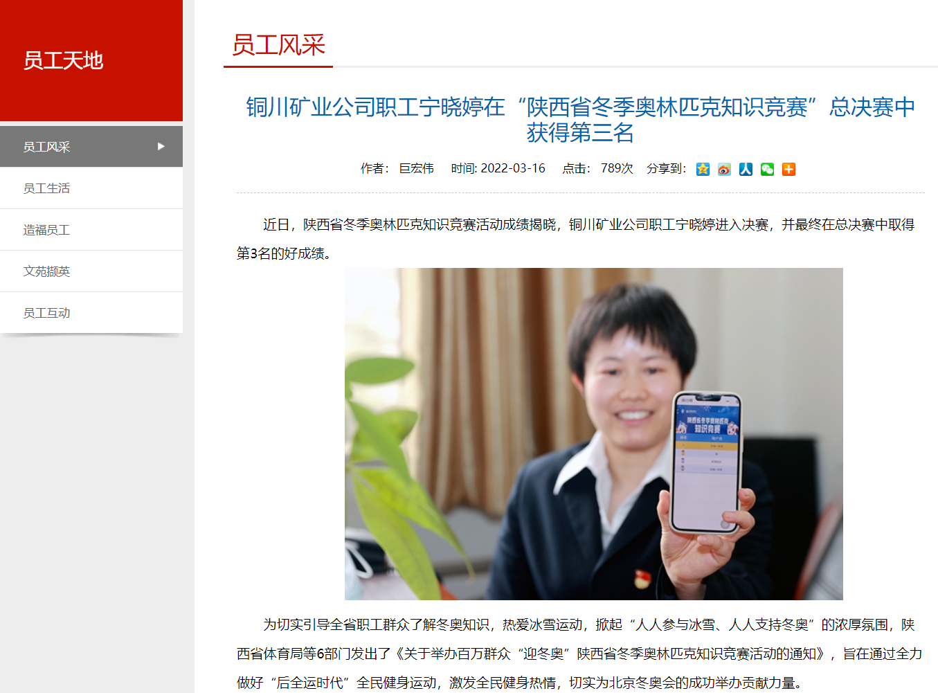 近日,陜西省冬季奧林匹克知識(shí)競(jìng)賽活動(dòng)成績(jī)揭曉,銅川礦業(yè)公司職工寧曉婷進(jìn)入決賽,并最終在總決賽中取得第3名的好成績(jī)。
