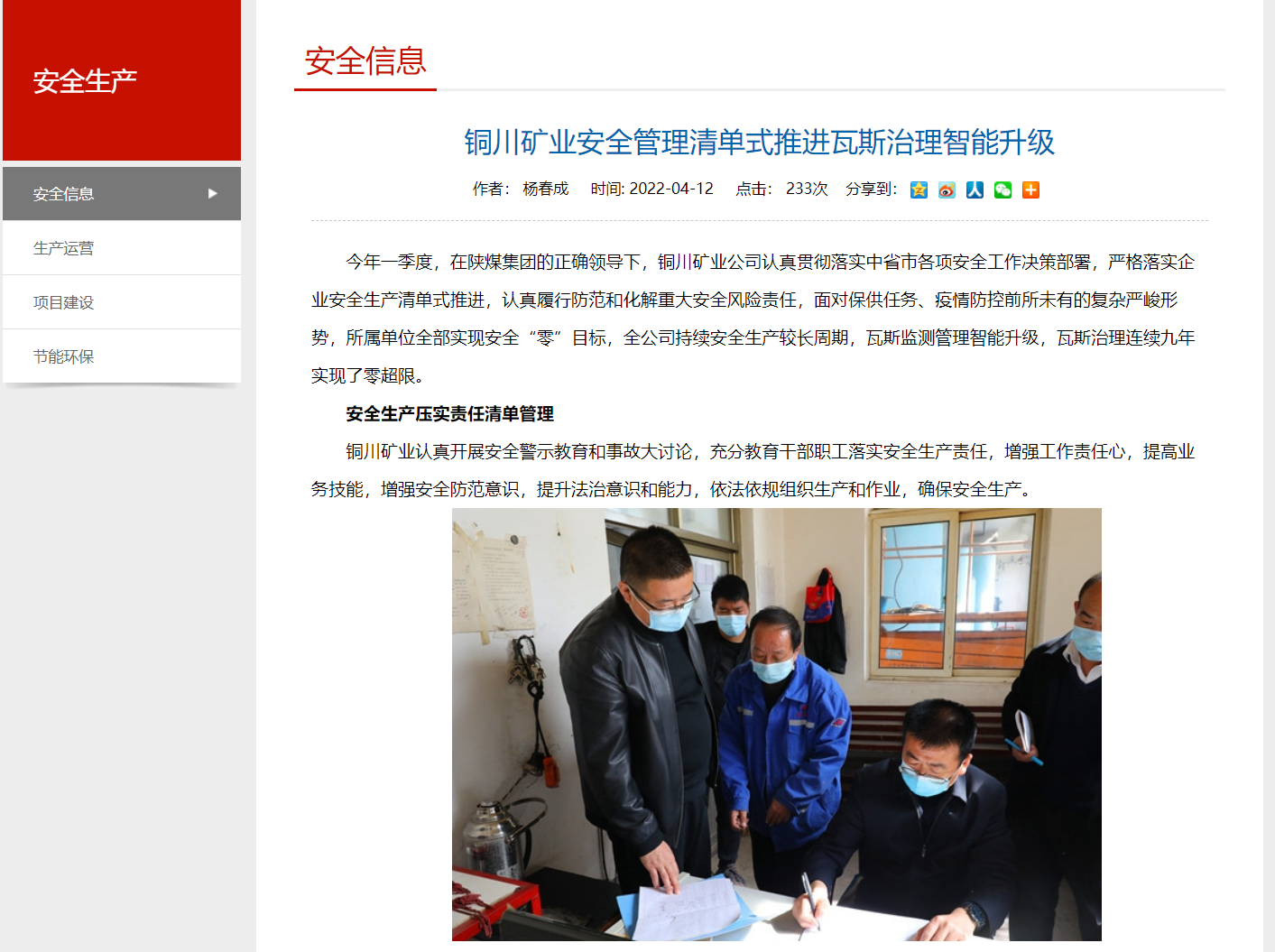 今年一季度,在陜煤集團(tuán)的正確領(lǐng)導(dǎo)下,銅川礦業(yè)公司認(rèn)真貫徹落實(shí)中省市各項(xiàng)安全工作決策部署,嚴(yán)格落實(shí)企業(yè)安全生產(chǎn)清單式推進(jìn),認(rèn)真履行防范和化解重大安全風(fēng)險(xiǎn)責(zé)任,面對(duì)保供任務(wù)、疫情防控前所未有的復(fù)雜嚴(yán)峻形勢(shì),所屬單位全部實(shí)現(xiàn)安全“零”目標(biāo),全公司持續(xù)安全生產(chǎn)較長(zhǎng)周期,瓦斯監(jiān)測(cè)管理智能升級(jí),瓦斯治理連續(xù)九年實(shí)現(xiàn)了零超限。