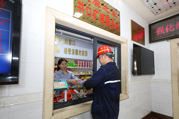 該礦井口礦嫂服務(wù)點(diǎn),女工家屬熱情的為來往的職工提供便攜食品和飲品,叮囑大家要按章指揮,按章作業(yè),牢記安全?!拔业淖饕录绨蛱庨_線了,麻煩幫我補(bǔ)一下吧!”礦嫂在縫紉機(jī)前三兩下便將開線部位縫補(bǔ)完成,讓職工感到貼心更暖心。