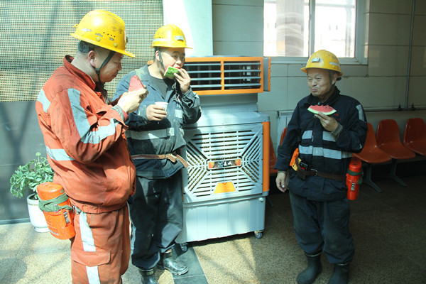 此次安裝的HY-L03HSZ型蒸發(fā)式工業(yè)冷風(fēng)機除了能為公共場所帶來新鮮空氣和降低溫度之外,而且還節(jié)能、環(huán)保、易操作。為了確保冷風(fēng)機的正常運行,該礦安排專人每天定時給冷風(fēng)機加水,并進行檢查維護,確保職工能夠感受到夏日里的涼風(fēng),吹走職工心頭的燥熱,沁潤著大家的心脾,讓大家以良好的精神狀態(tài)投入到工作中。