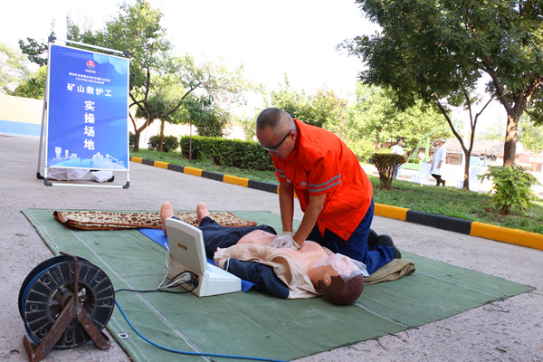 捋順管路、固定氧氣瓶、轉(zhuǎn)動調(diào)節(jié)器……在礦山救護(hù)工競賽現(xiàn)場,每一次“滴、滴、滴”的計(jì)時(shí)聲音中,救護(hù)隊(duì)員與時(shí)間競速,快速準(zhǔn)確完成氧氣呼吸器操作及故障處置,利用模擬人對救護(hù)工對CPR操作的關(guān)鍵要點(diǎn),包括按壓位置、深度、頻率的掌握情況進(jìn)行考核,整套動動完成拍下計(jì)時(shí)結(jié)束按鈕,扣人心弦,緊張激烈。