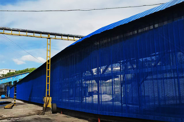該通道設(shè)計(jì)全長120米,寬6米,拱頂距地面高6.7米,采用鋼結(jié)構(gòu)支撐體系與抑塵網(wǎng)組成,形成連續(xù)的覆蓋表面,能夠有效抑制貨運(yùn)車輛運(yùn)輸揚(yáng)塵,有效降低儲(chǔ)運(yùn)區(qū)域空氣顆粒物指標(biāo)濃度,并阻隔降低運(yùn)輸噪聲污染。